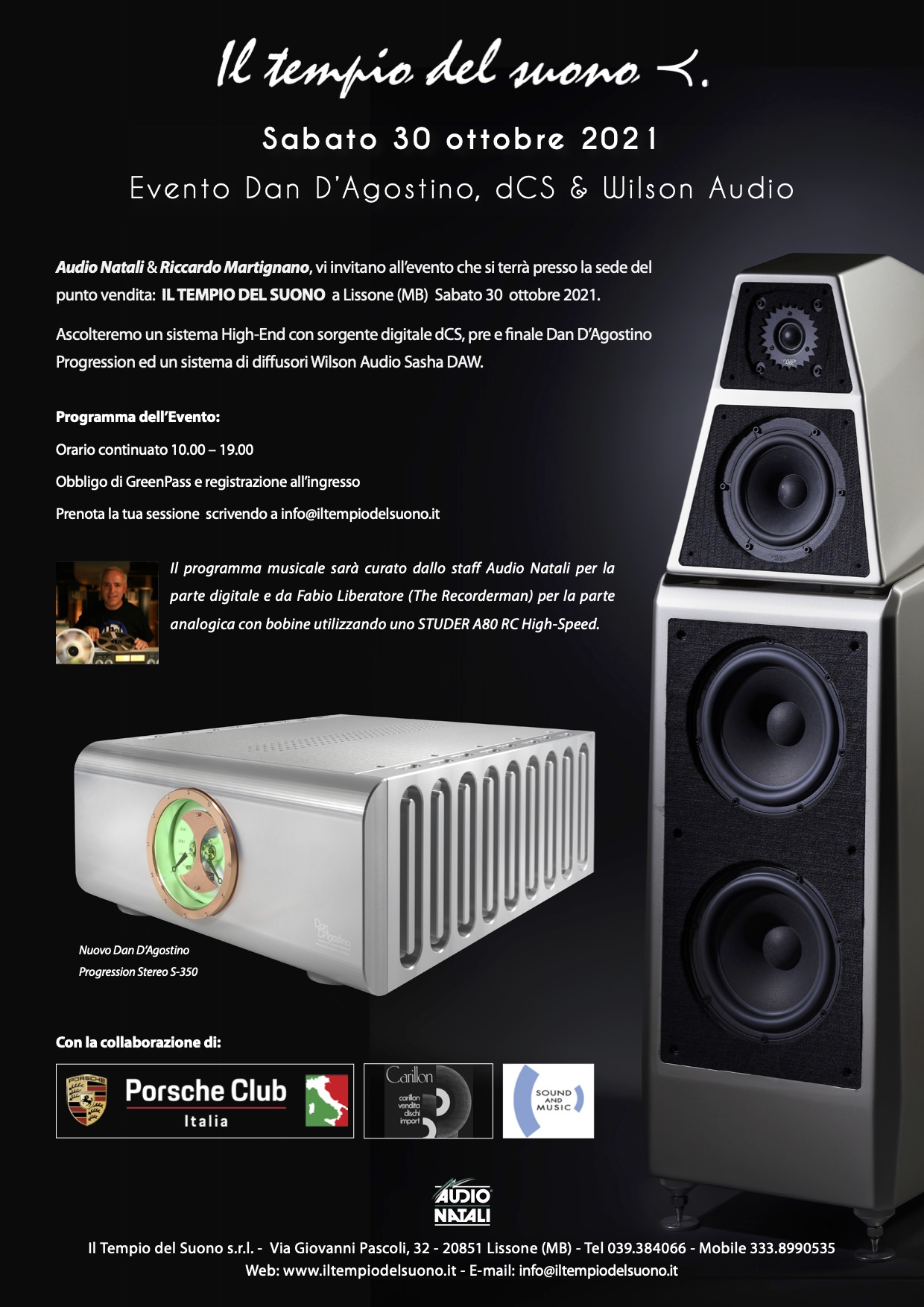 Il programma musicale sarà curato dallo staff Audio Natali per la parte digitale e da Fabio Liberatore (The Recorderman) per la parte analogica con bobine utilizzando uno STUDER A80 RC High-Speed.