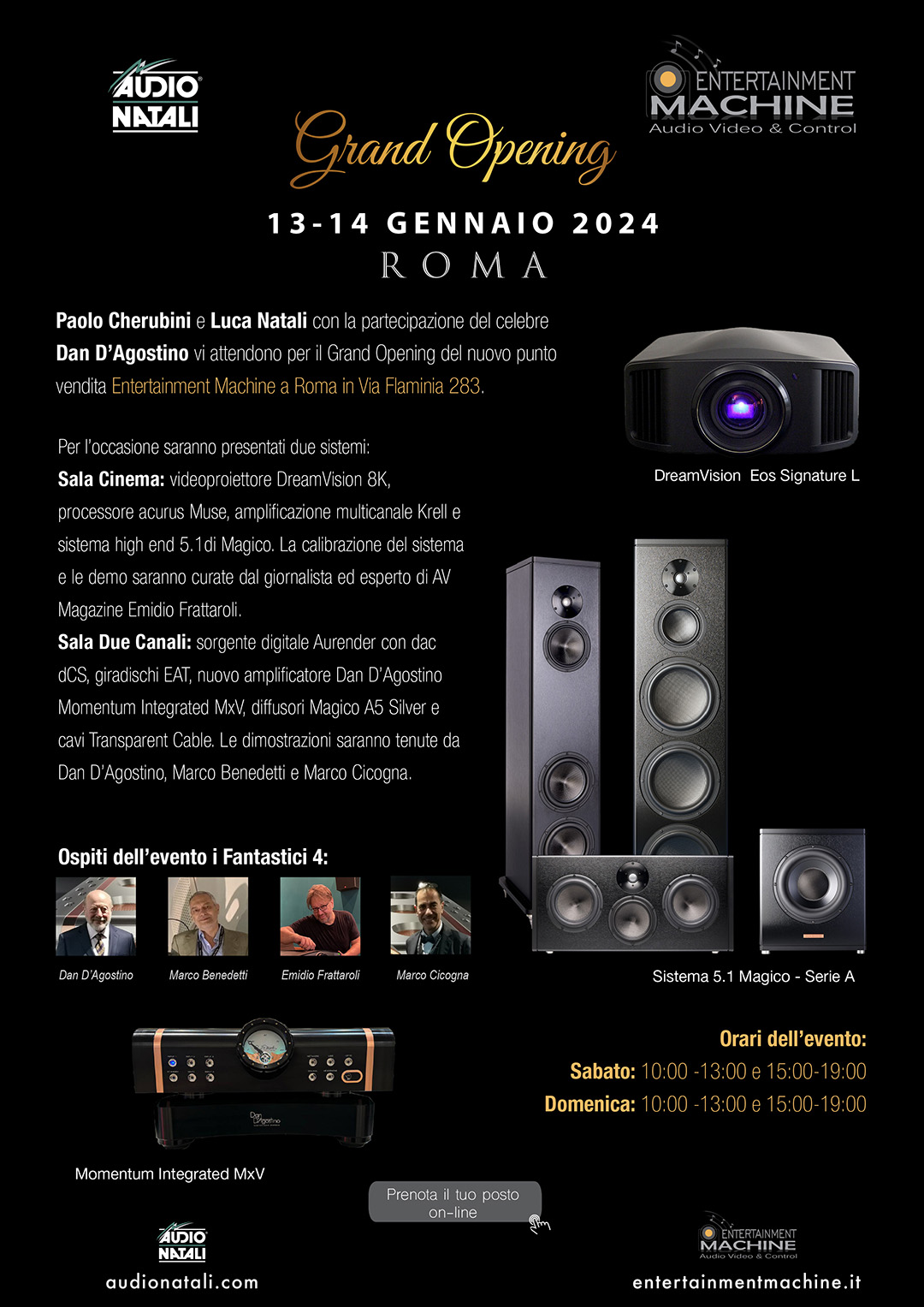 Paolo Cherubini e Luca Natali con la partecipazione del celebre Dan D’Agostino vi attendono per il Grand Opening del nuovo punto vendita Entertainment Machine a Roma in Via Flaminia 283.