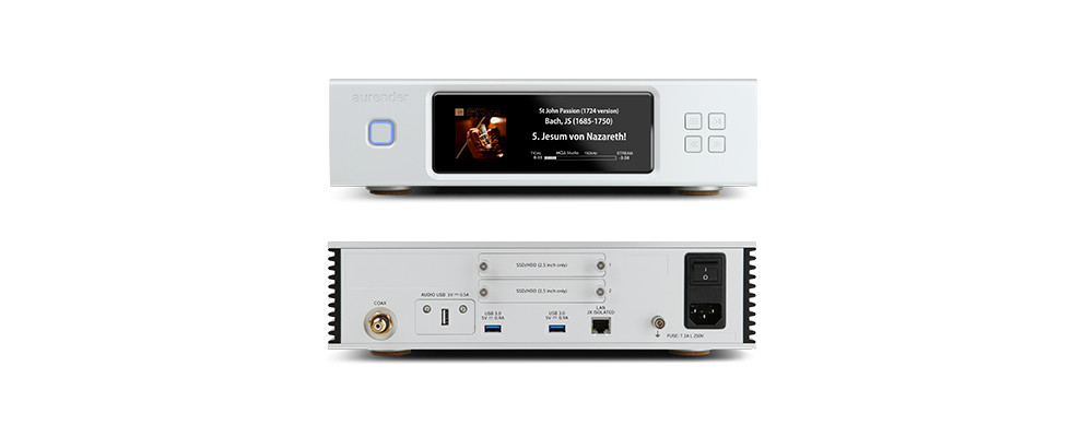 Sono inclusi anche tutte le innovazioni Aurender che ti aspetti, inclusi i nostri ultimi digitali Audio Class 2.0 USB e Coassiale, le porte ethernet gigabit isolate 2X e l'alimentatore supertex basato su condensatore, che garantisce energia costante alla macchina. Abbiamo inoltre ampliato le opzioni per la capacità di archiviazione della libreria musicale interna, fornendo due vassoi dual HDD / SSD accessibili dall'utente, permettendo di scegliere il tipo e la capacità di unità che meglio soddisfa le tue esigenze. E se stai solo facendo streaming, non è necessario installare altre unità di archiviazione.