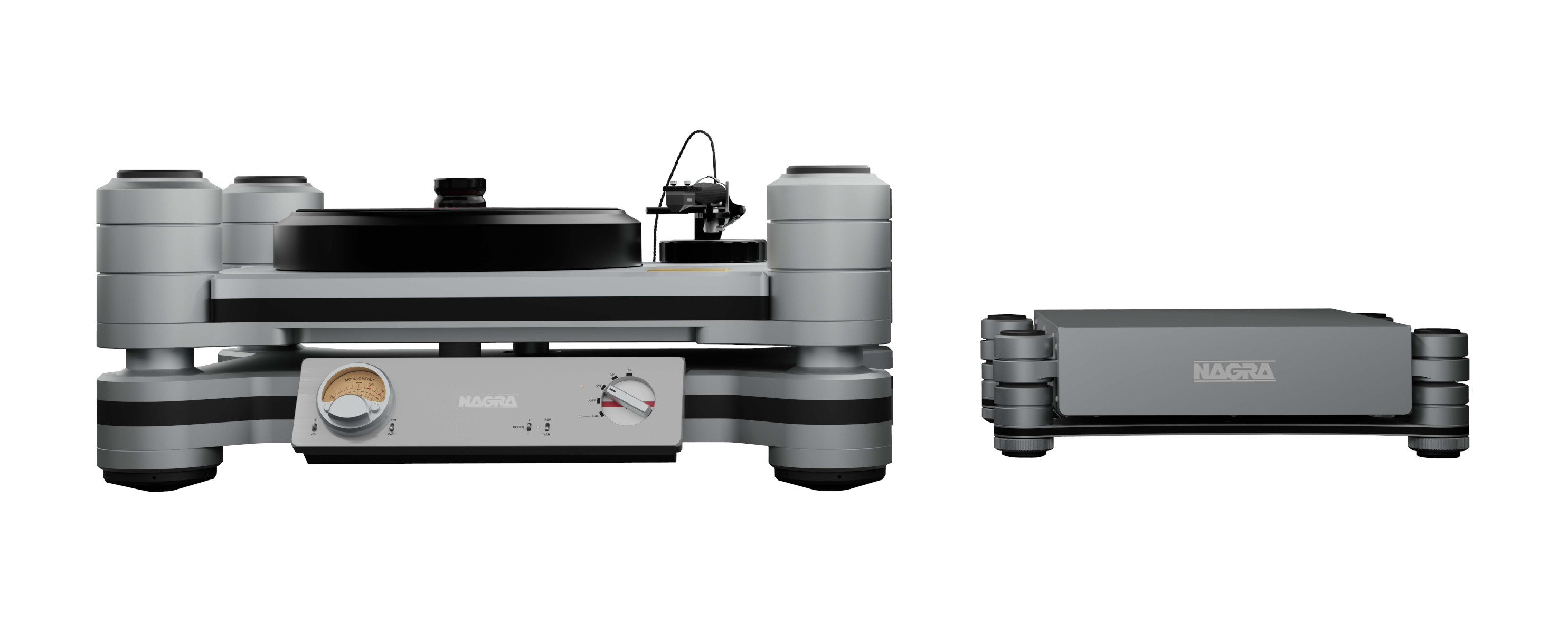 Per il piatto si è scelta una soluzione radicale ed innovativa che ha condotto all'impiego di una lega non ferrosa ad alta densità di derivazione aeronautica dalle straordinarie caratteristiche di inerzia ed elevato smorzamento. Il nome di questo composto è Exium AM®, sviluppato da una ditta francese che è contractor per l'ente aerospaziale CNES. Lavorato con macchine a controllo numerico il piatto pesa da solo 6,5 Kg. Meccanica di precisione anche per il sottopiatto e perno, questo realizzato in acciaio rinforzato sottoposto a lavorazione e rifinitura che attinge alla migliore tradizione orologiaia svizzera. Rifiniture, incisioni ed elementi decorativi sono realizzate in modo da integrarsi perfettamente con l'elemento funzionale del giradischi e al tempo stesso configurare un oggetto unico nel suo genere anche sotto il profilo estetico. Il “clamp” da collocare sul disco è in pieno di rame con una speciale configurazione, telaio e controtelaio sono realizzati da lastre piene di alluminio aeronautico e speciali resine fenoliche, realizzando una spina dorsale della macchina dalla solidità assoluta, basso fattore di risonanza ed elevata rigidità. Fattore determinante per le prestazioni è anche la sospensione. Qui gli ingegneri Nagra hanno attinto alla esperienza maturata con lo sviluppo degli HD PREAMP e HD DAC X, ma all'interno hanno sviluppato un originale sistema che coniuga il meglio dei sistemi idraulici e meccanici. Il meccanismo utilizza molle ed un fluido viscoso in speciali alloggiamenti e consente la sospensione nelle tre dimensioni determinando una inedita resistenza a vibrazioni e risonanze interne e nei confronti di quelle indotte dall'ambiente. Il test in questo caso ha utilizzato l'ascolto ad alto volume di brani ricchi di basse frequenze con grandi diffusori collocati a pochi centimetri dal giradischi. Le misure indicano una frequenza di risonanza del sistema prossima a 3 Hz, che garantisce una riproduzione musicale a qualunque livello di ascolto totalmente priva di colorazioni o feedback.
