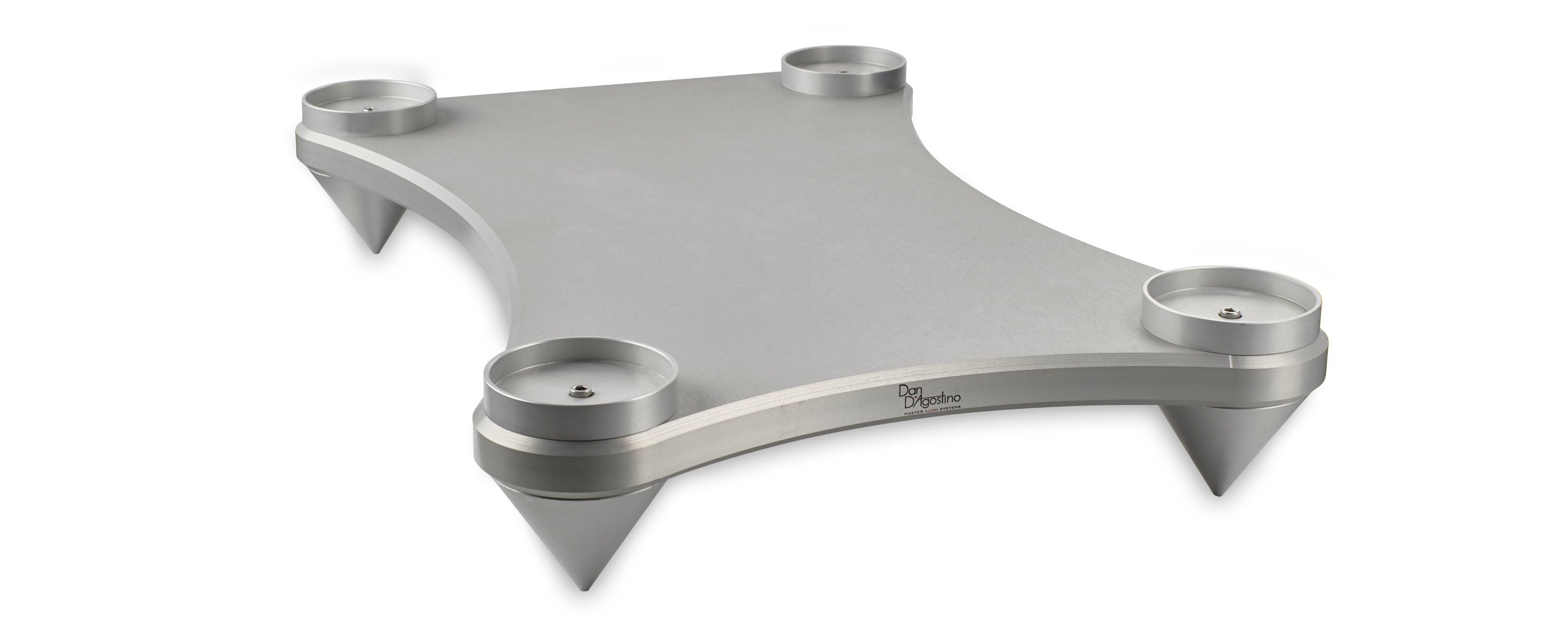 Stand per finali Dan D'Agostino in alluminio ricavato dal pieno. Disponibile in alluminio naturale e alluminio anodizzato nero.