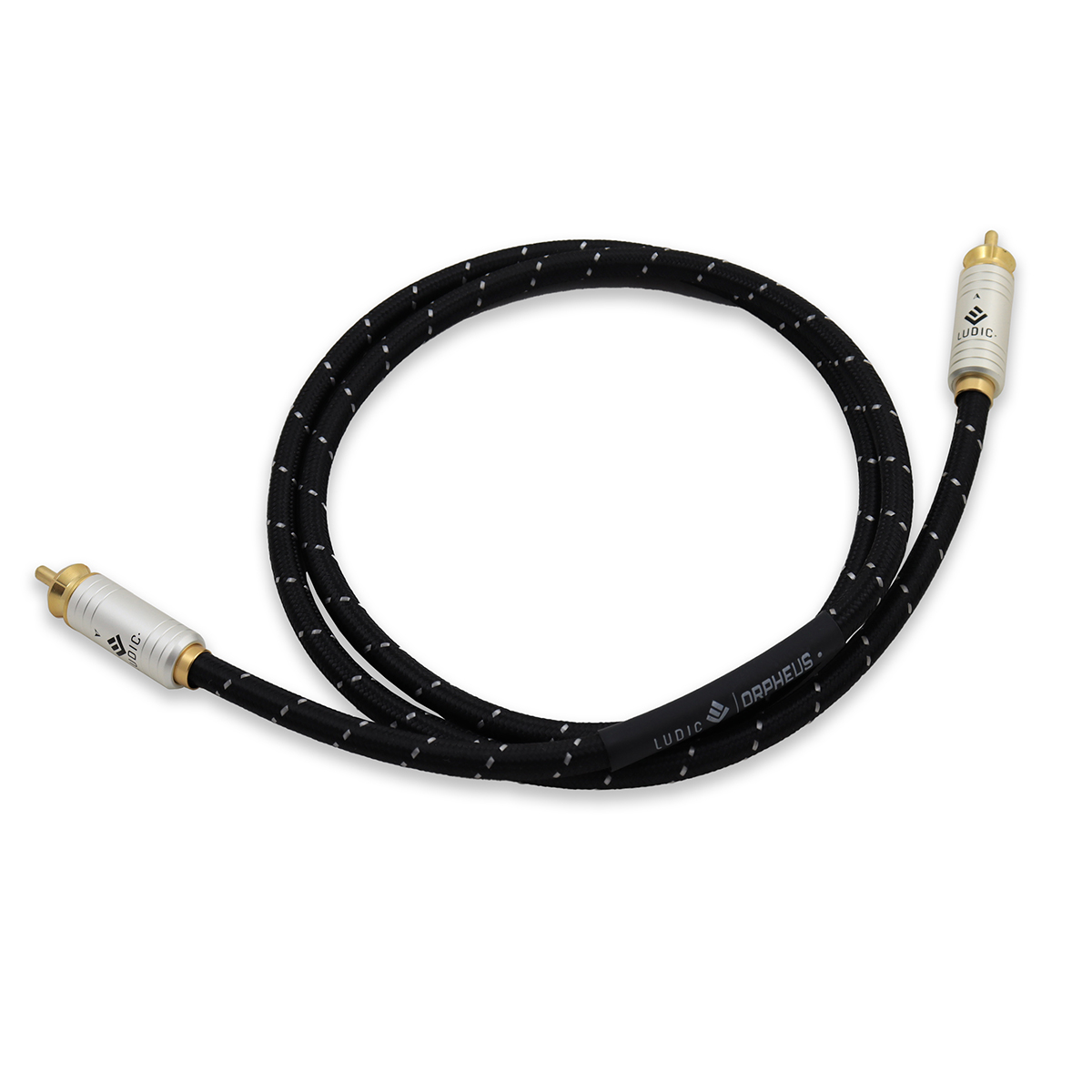 Il cavo di segnale coassiale Ludic Orpheus ha una struttura di conduttori interni multicore, ognuno con una sezione trasversale di 0,2407 mm² realizzata in rame puro con tecnologia OCC®-Evolve.current.OCC (rame privo di ossigeno) e una purezza del materiale del 99,9999% (6N). Lo schermatura è realizzata con foglio di alluminio e treccia di rame stagnato. Il mantello è in tessuto di cotone nero di alta qualità con rifiniture argentate, con dimensioni di 6,0±0,15mm. I connettori sono spine RCA placcate in oro 24 carati, il manicotto è realizzato in ottone, nichelato e poi laccato in argento perlato. Le superfici di contatto delle spine (m/m) sono rivestite in oro 24 carati resistente alla corrosione per una trasmissione senza perdite. La tecnologia di sovra-moldatura Ludic Stability Over Molding (L.S.O.T) viene utilizzata per il contenimento perfetto delle zone di saldatura, integrando maniche di alloggiamento multiparti contro influenze ambientali nocive come l'ossigeno e la protezione massima contro sforzi meccanici.