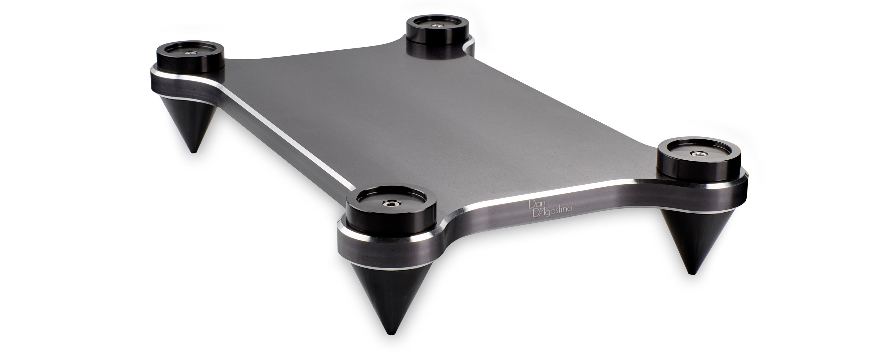 Stand per finali Dan D'Agostino in alluminio ricavato dal pieno. Disponibile in alluminio naturale e alluminio anodizzato nero.